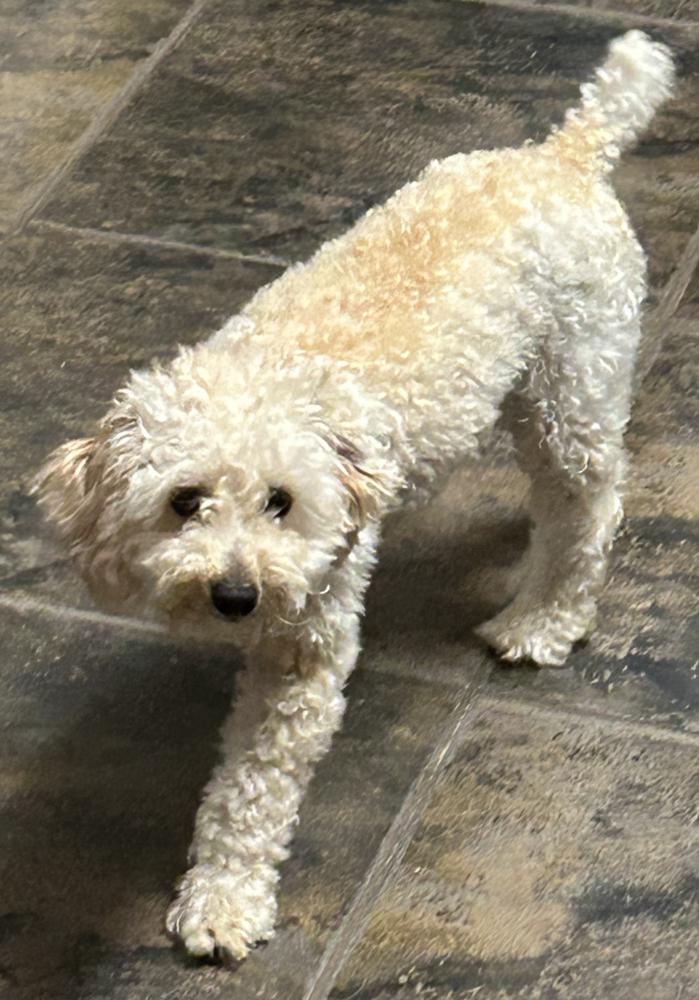 Pet Description:White male poodle with reddish highlights on ears and back. 8 pounds. One year old. |