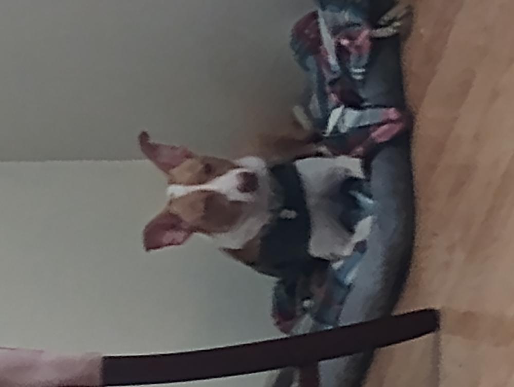 Pet Description:white and tan jack russell Terrier name winniewith vest on very scared. |