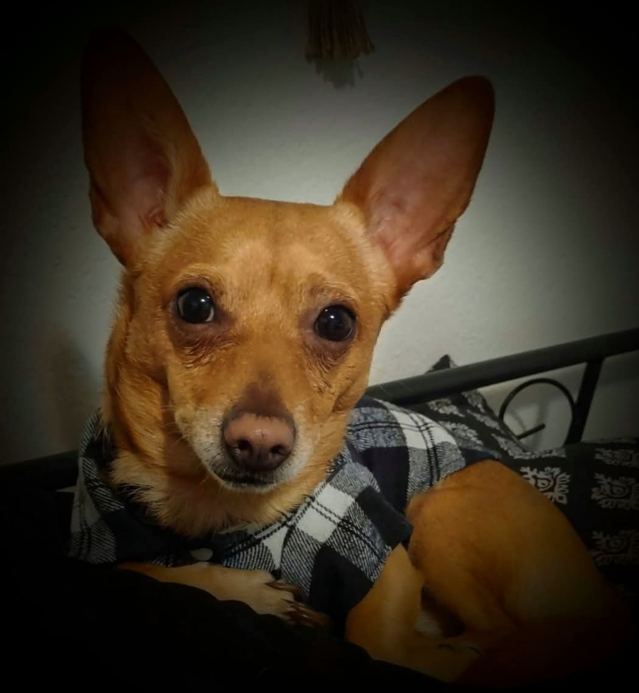 Pet Description:Chucho is very friendly and sits up for attention he is a reddish brown with white grey around his nose and mouth and some white on his paws.He is 4 yrs.old |