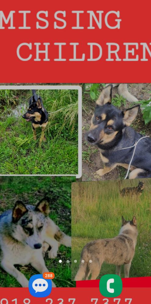 Pet Description:Gemma almost 4 yrs old . spayed . is mostly jet black blonde gold ish undercoat , short hair but thick , extra big long tail , boi looks like a coyote/ husky with distinctive markings on face heas about 2 yrs old intact |