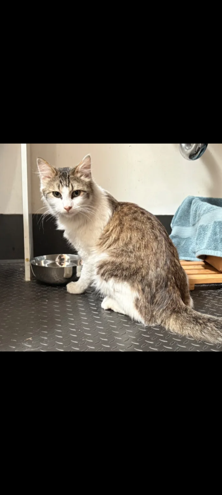 Pet Description:Pounce is a Maine coon mix. Light grey tabby markings from head to fluffy tail with a white chest, belly and all four legs. He is very friendly, talkative and always looking for something to eat. |