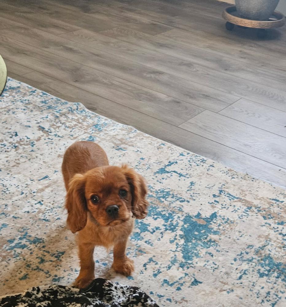 Pet Description:King charles cavalier spaniel her is ginger she is a small breed |