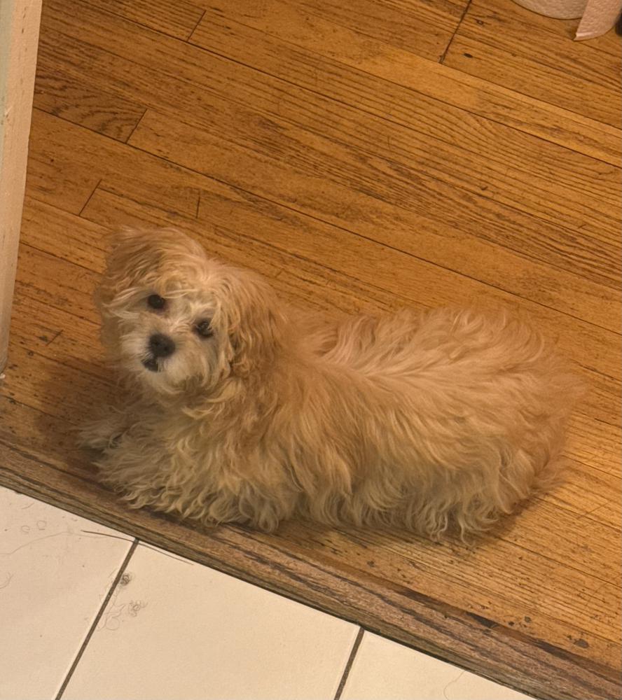 Pet Description:Small shorkie (yorkie, shihzu) mixhoney blonde, playful, female |