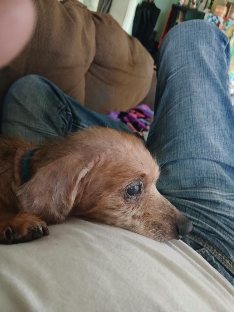 Pet Description:Hairless dog, 12 years old, black collar, |