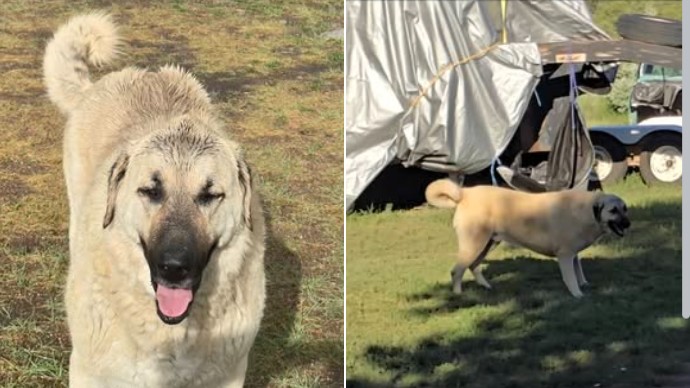 Pet Description:Very friendly 140lb neutered male, visibly limping, no collar but chipped. This livestock guardian is not likely to bother any animals, but may not be friendly with other dogs. He usually returns home in a few hours, but has been gone for days now. |