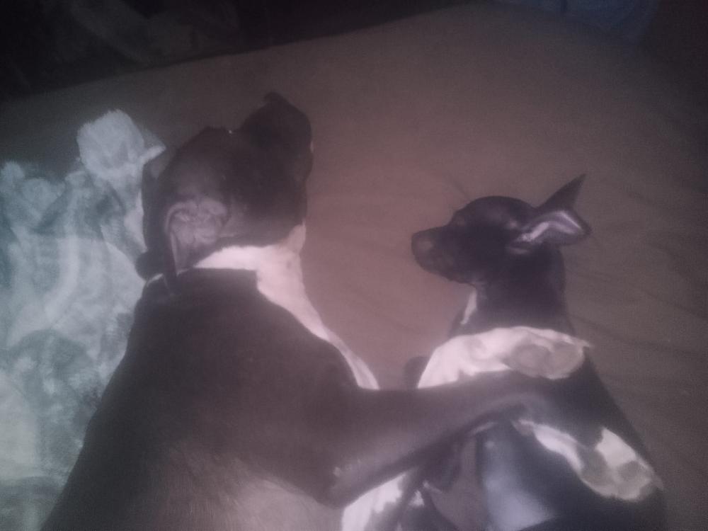 Pet Description:Millie is black with white markings. She has a white chest the white wraps halfway around her neck. She also has white paws and is wearing a light pink leather collar. |
