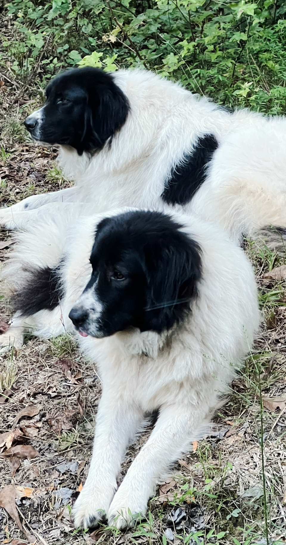 Pet Description:Large fluffy black and white Karacachan livestock guardian dog. Friendly to people |