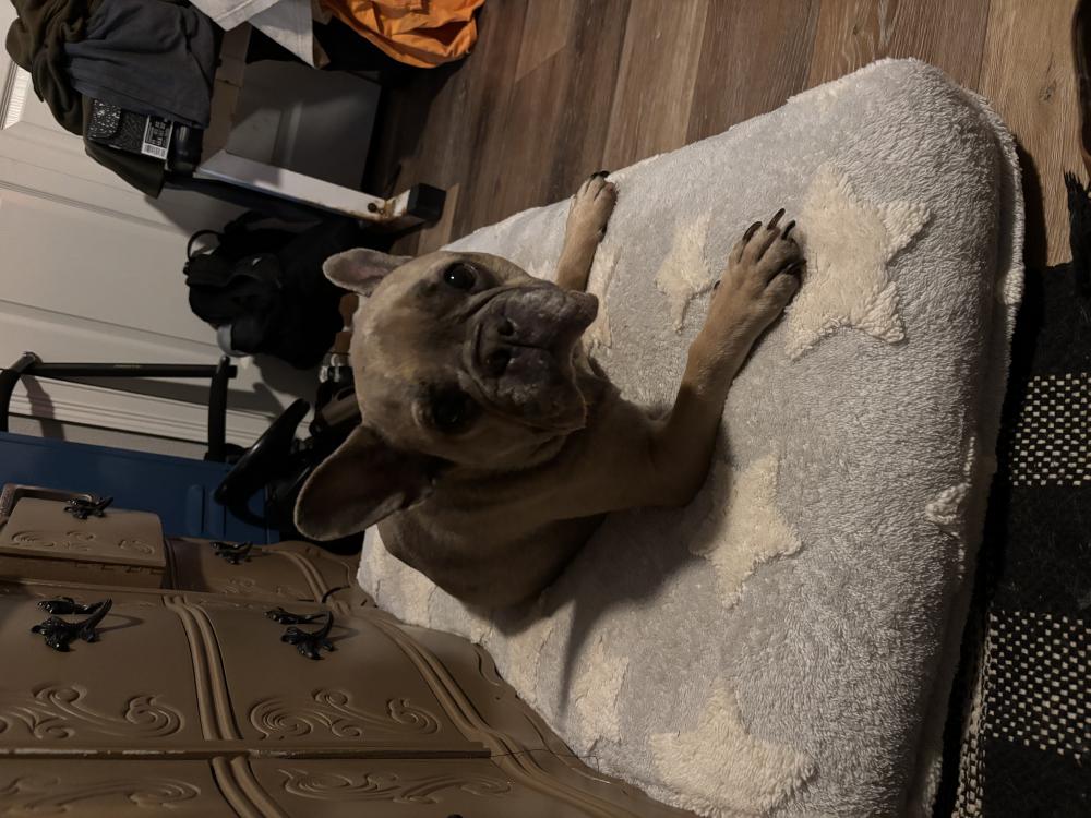 Pet Description:Short, smooth, Tan coat ,Wrinkled forehead and bat-like ears. 10 years old, no collar, chipped, spayed, very sweet french bulldog |