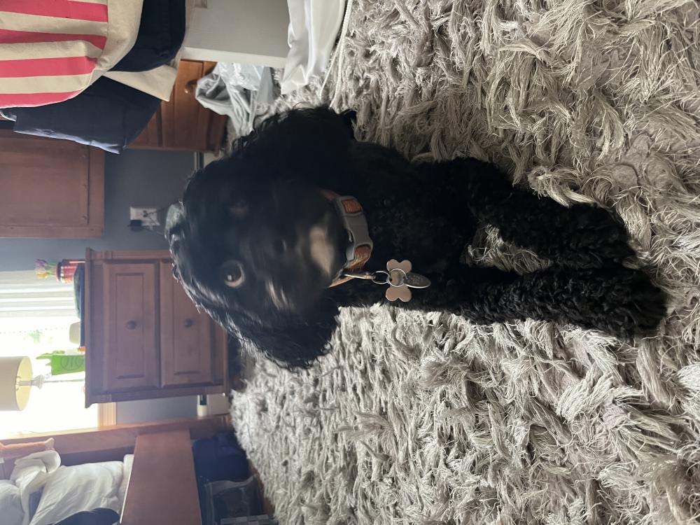 Pet Description:He is a Cavapoo. Around 16-20 lbs and is a fairly small dog. He was last wearing an orange collar. Has a white strip of fur under his mouth and on his belly. |