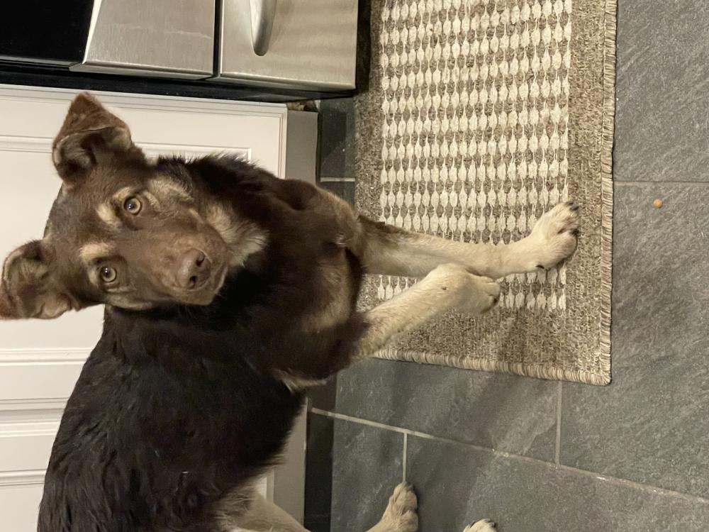 Pet Description:Medium brown with tan legs and spots above eyes. |