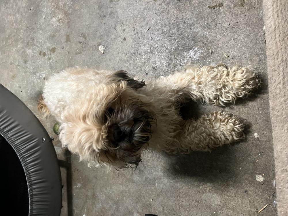 Pet Description:She is a tan brown and white ShihTzu mix. About 2 or 3 years old maybe. Very energetic, very playful and super sweet (she just rolls over in your lap ready for tummy rubs and belly rubs). She’s got some black and grey fur around her face in the nose and mouth area. |