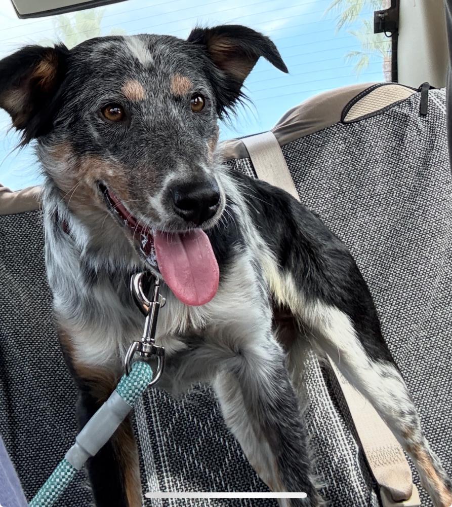 Pet Description:She is an Australian Sheppard mixed with brown white grey and black. She has brown eyebrows and gave birth recently. She is really calm and still has hair growing back on her belly from the spade surgery. |