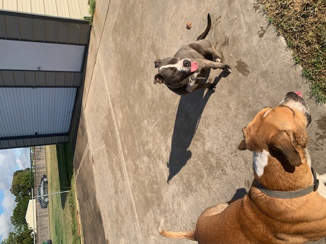 Pet Description:wearing grey collar , gold and white coat. very friendly, May be with small grey pit bull |
