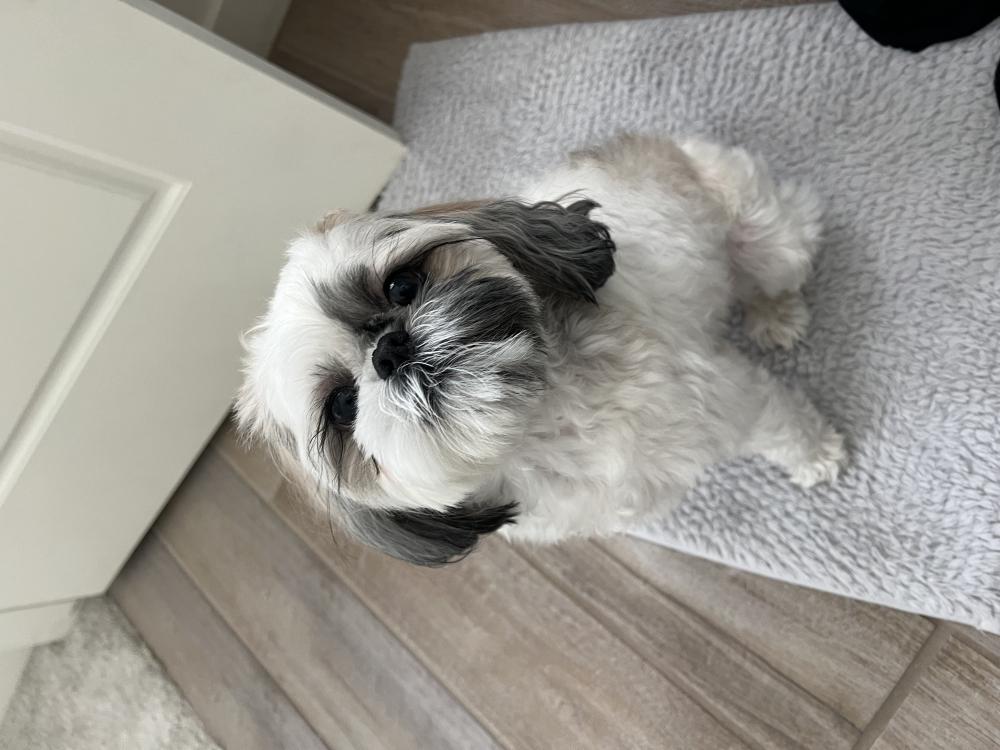 Pet Description:10 lb Shih Tzu. Primarily white. Has grey/black ears , light brown spot on her back. Very friendly. Needs her momma |