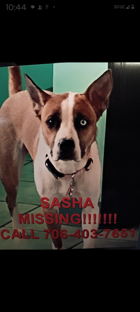 Pet Description:Medium height slim petite build tannish brown and white husky boxer mix with ONE BLUE EYE ONE BROWN EYE female |
