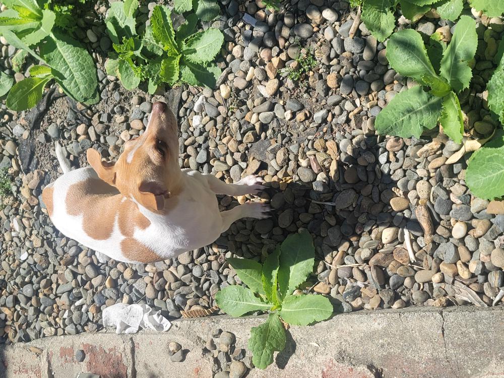 Pet Description:A small chihuahua, white wood, tan big spots on her one is shaped like a heart on her |