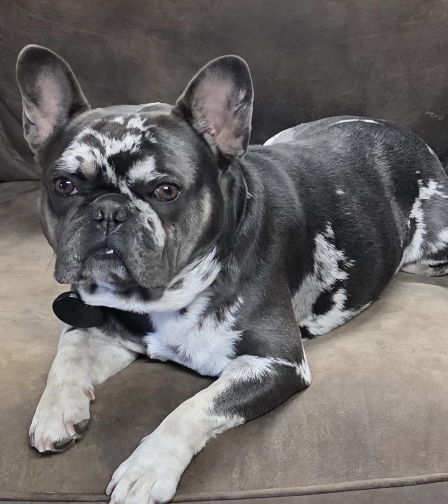Pet Description:25 lbs male french bulldog. Merrel color grayish brown and white. No collar and micro chipped. |