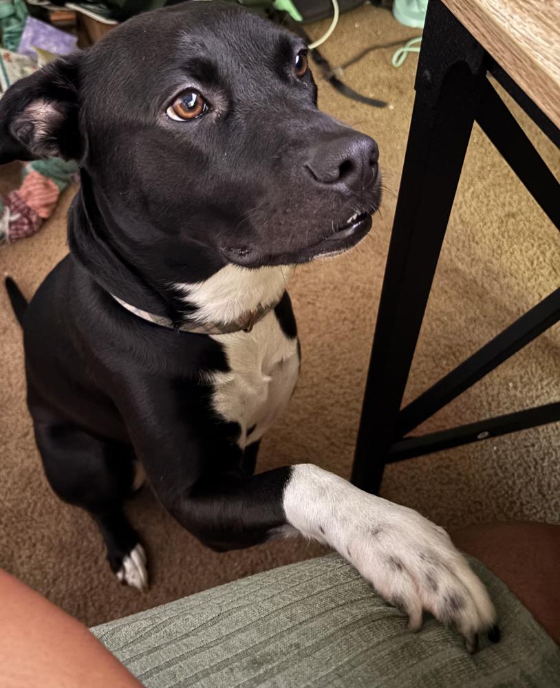 Pet Description:Black and white, very friendly and playful she has white paws and wears a pearl necklace. |