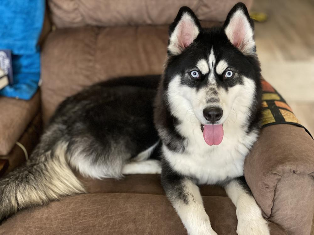 Pet Description:Young black and white husky. Very friendly and intelligent. Believe to be an adolescent and possibly unspayed. Forehead marking looks like a Fleur De Lis. |