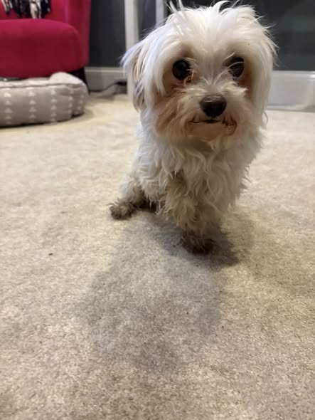 Pet Description:Small teacup size white dog that looks like a mix of maltese and another small dog. |