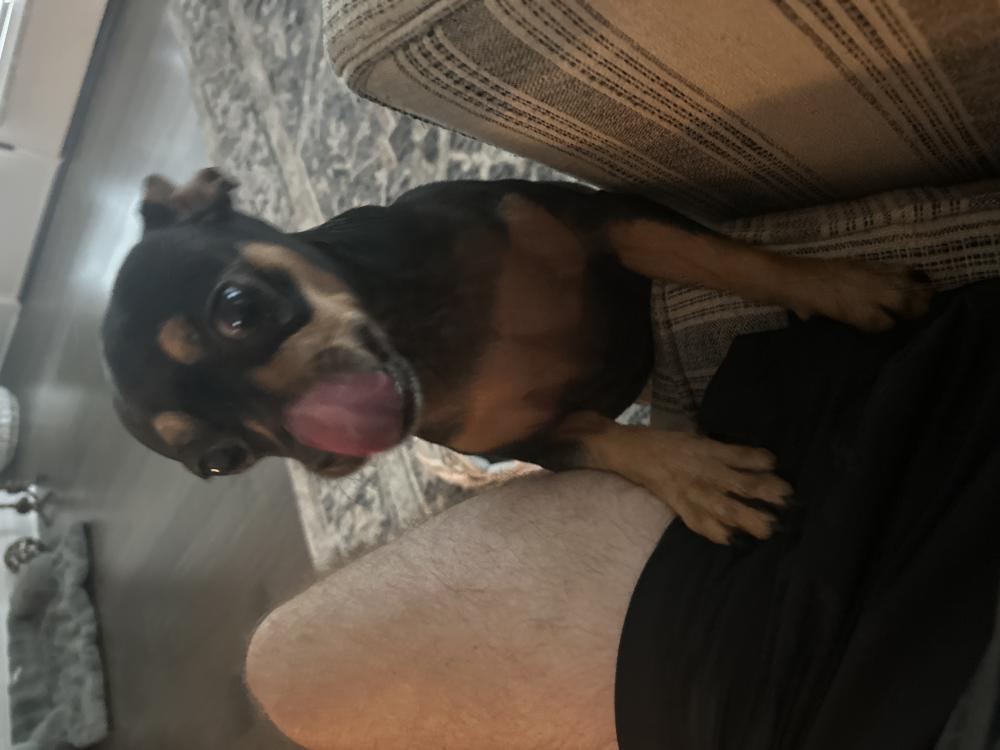 Pet Description:She looks like a miniature pincher and very overweight. She is skittish so I don't know how successful this will be. She does not have a collar. |