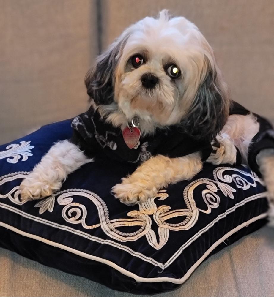 Pet Description:small Shih Tzu tricolor mostly white with not too may brown highlights in the black/dark grey areas on the back and ears. She was wearing a light purple collar with a couple of other light colors on it. Her collar had a heart shaped rabies tag says 2024, Rabies, Miami, Florida, Low Cost Pet Vax and a 6 digit number, and a Texas phone number the collar also has an Alex and Ani paw charm, she has fluffy soft hair. Microchipped |