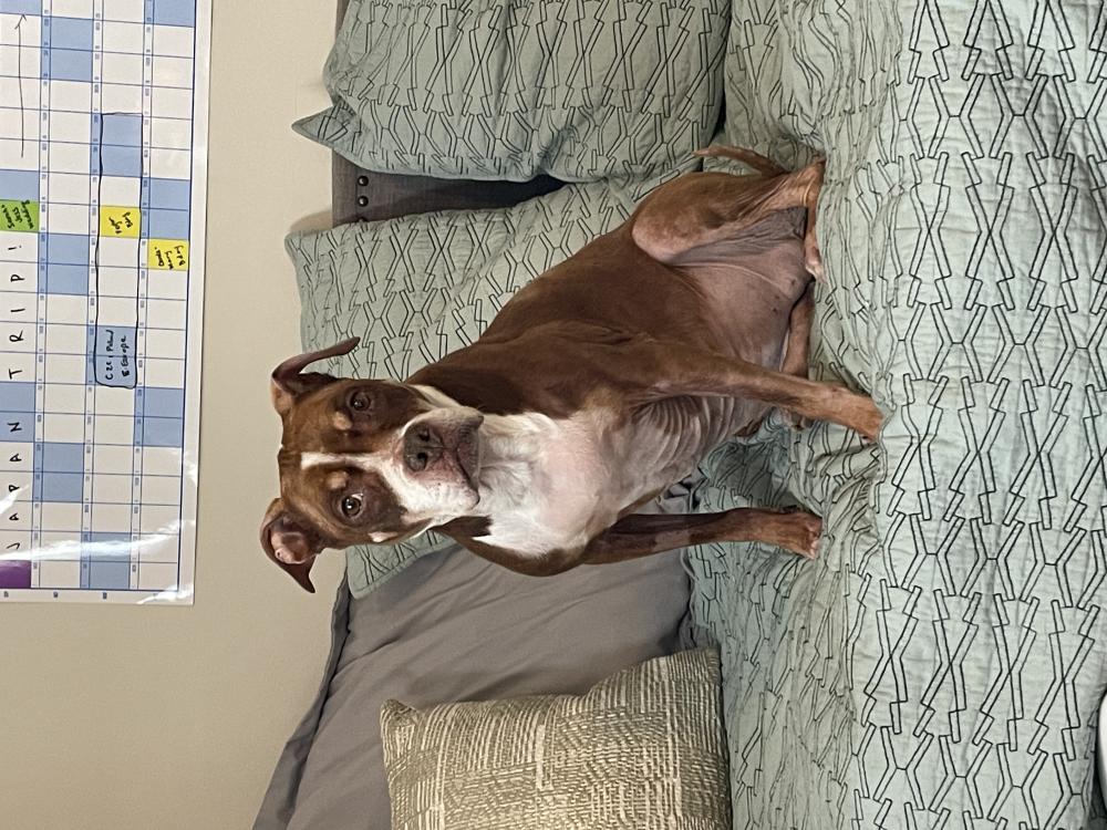 Pet Description:Lucy is a small brown pitbull about 11 years old with bad hips and a little bit of a limp. She has a white muzzle and white paws. Her eyes are brown and she doesn’t have much hair on her tail |