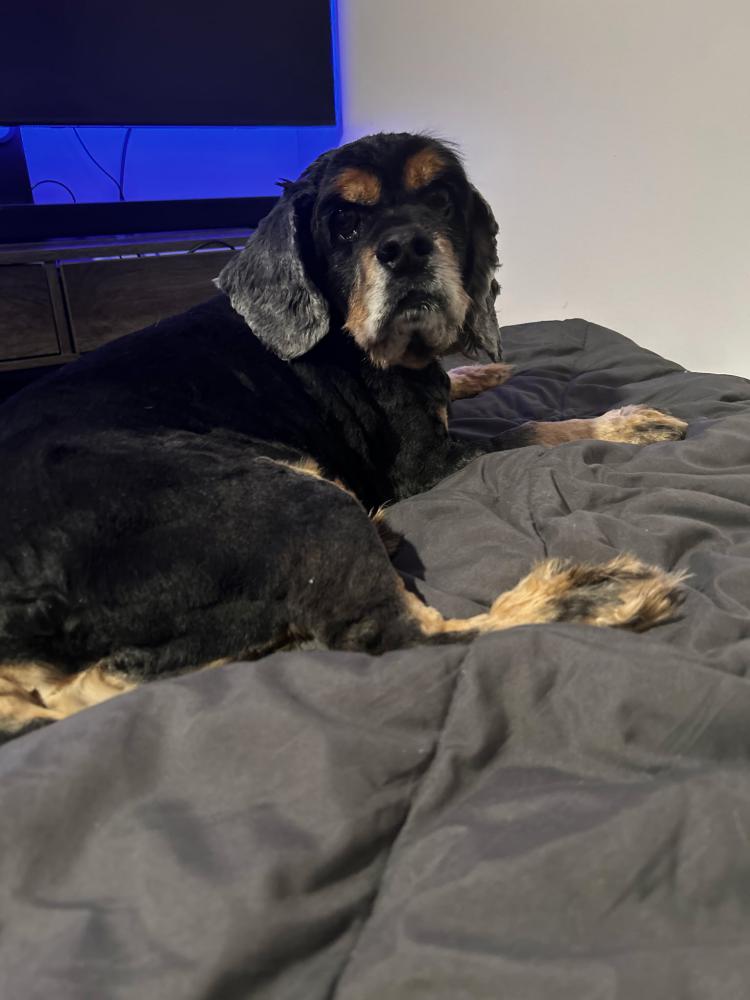Pet Description:About Bobby:• Black Cocker Spaniel with brown paws • Friendly, but may be scared; partially deaf; he is 12 years old |