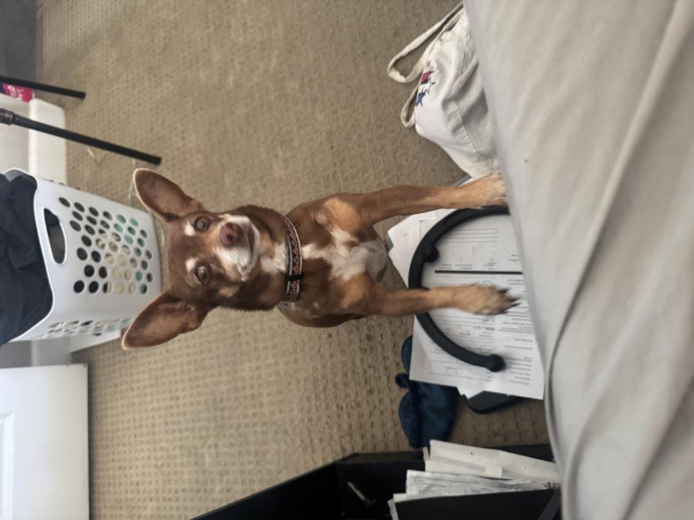 Pet Description:Brown and tan chihuahua with leash and collar still attached . |