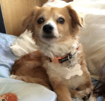 Pet Description:She’s a very small dog with a white patch on her chest. She’s got a brown red color to her fur. She’s got a worn down baby Yoda green collar and a bone shaped name tag. |