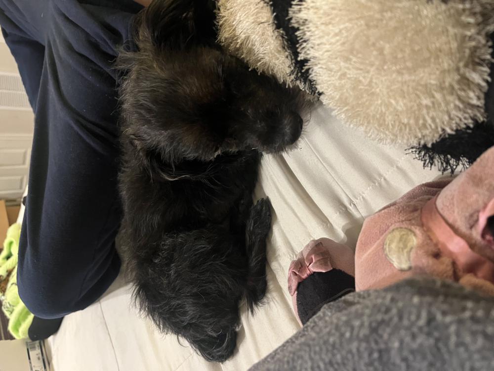 Pet Description:Small 10lb black morkie. Gray beard and gray under right eye. Senior doggie with vision and hearing problems. Very gentle. |