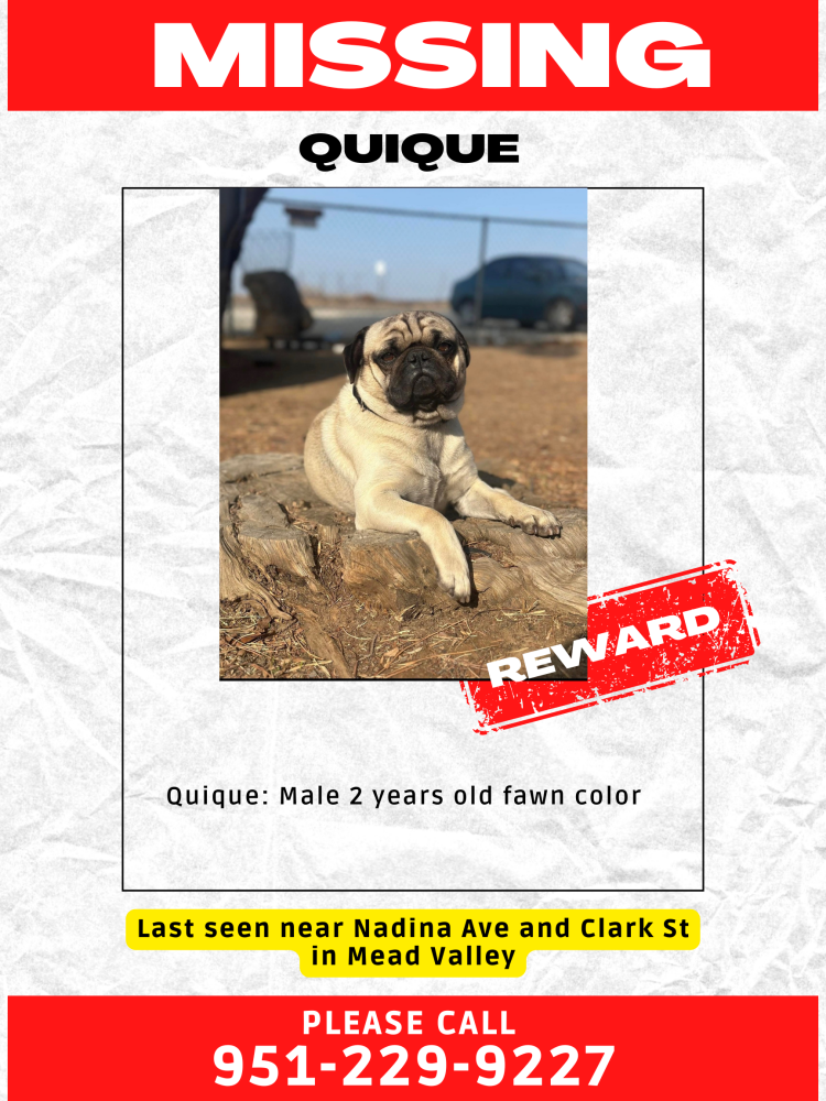 Pet Description:2 year old male pug fawn color |