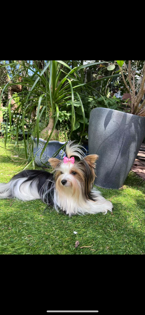 Pet Description:Linlin is a smaller Biewer Terrier. Her hair is currently cut shorter with no bow. She is black, white, and tan with a gentle disposition.$500 |