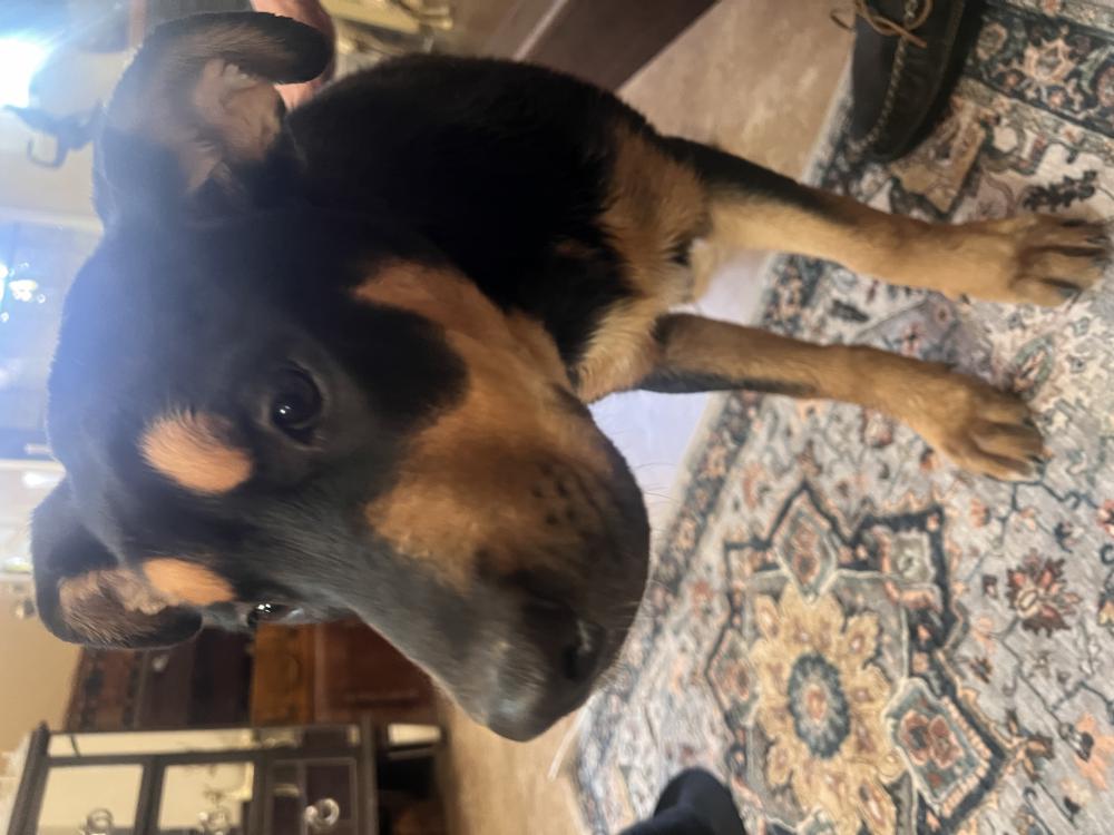 Pet Description:Brown black and gold on caramel color she’s about 7 months no chip she has maybe some German Shepard mix very well behaved and loving |