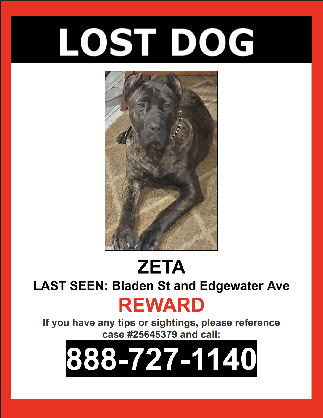 Pet Description:**MISSING SINCE 12/4/2025 AT 9 AM** Zeta is a female, brindle Cane Corso who escaped and was last seen near Bladen Street and Edgewater Avenue. Zeta is wearing HER COLLAR without tags and IS microchipped. If you see Zeta please DO NOT CHASE HER. PLEASE CALL OR TEXT ONLY. 302-561-4733$$ Reward $$ |