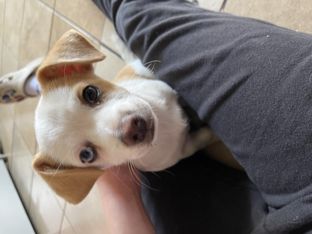Pet Description:A small chubbier chihuahua mix with brown spots, very friendly and one brown and one blue eye. |