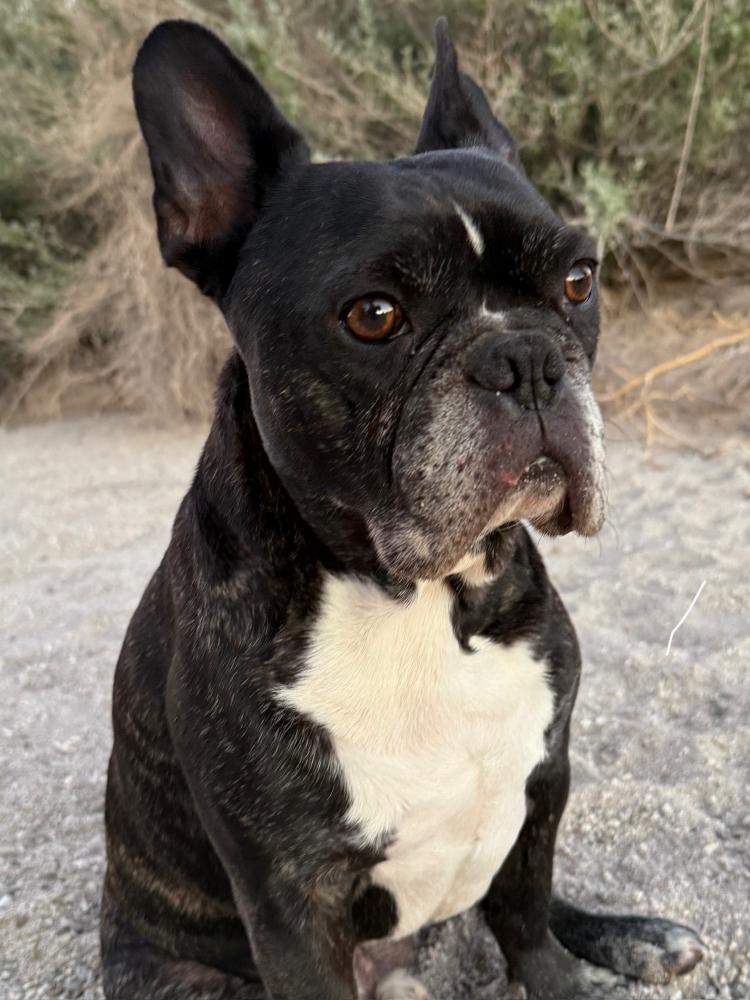 Pet Description:French bulldog, black brindle, white chest alask. Wearing camouflage body harness?If seen, please call bab frys at 619249221.Thank you |