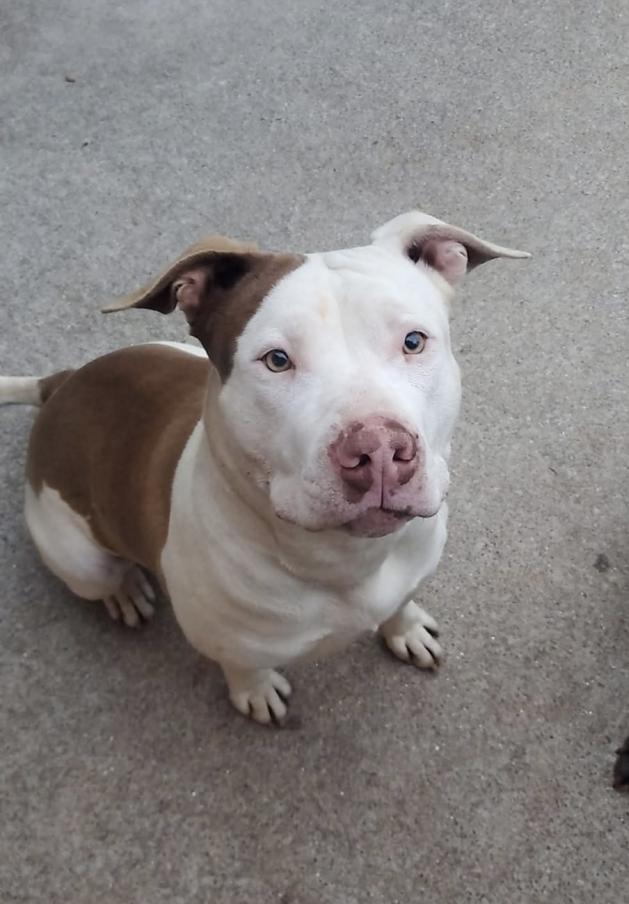 Pet Description:Zoey sweet girl , very patient and friendly White with brown pattern . Has one brown ear (right side ) Last seen wearing wide new pink collar |