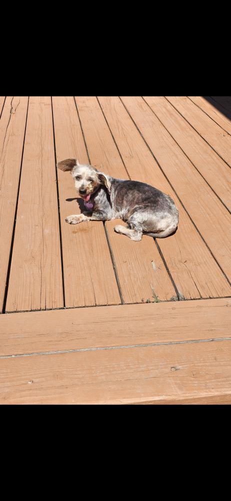 Pet Description:Small old dog. She usually has her tongue sticking out of her mouth. |