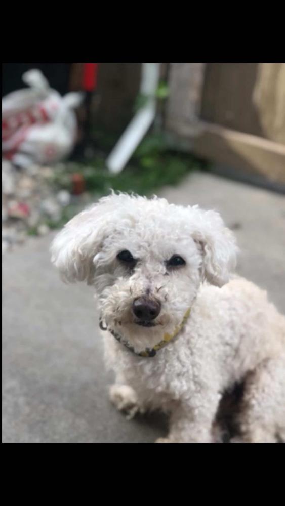 Pet Description:My baby is a mini poodle just 10 pounds, he’s white and 15 years old with cataracts, and fairly deaf, he’s got some brown/red fur on his paws he’s been recently groomed so he’s been shaved he’s got slight discoloration from age on his nose he’s pretty friendly just old and we miss him so much?? |