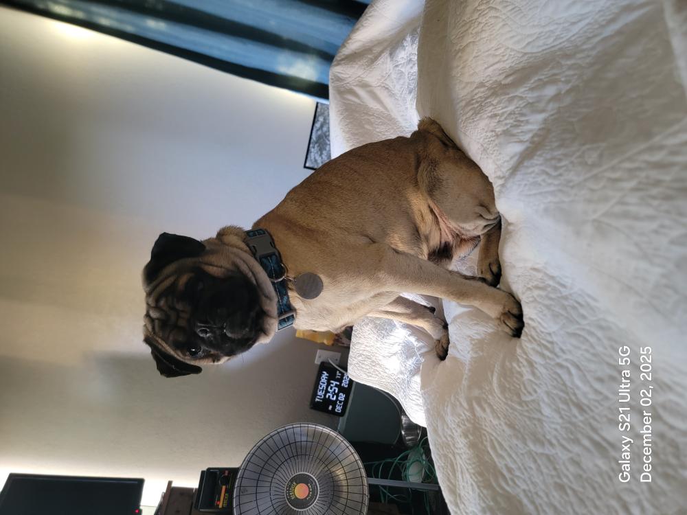 Pet Description:Cooper is very friendly, is Brindle with mostly black face. He has a blue-collar with my name and number and is chipped. Please bring him home. |