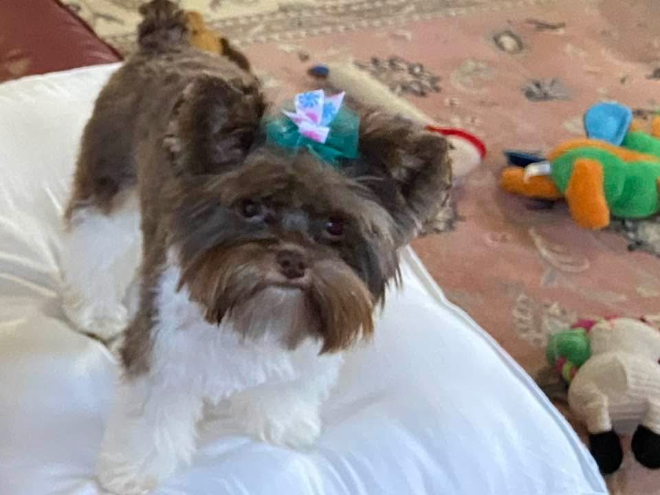 Pet Description:Small chocolate parti yorkie |