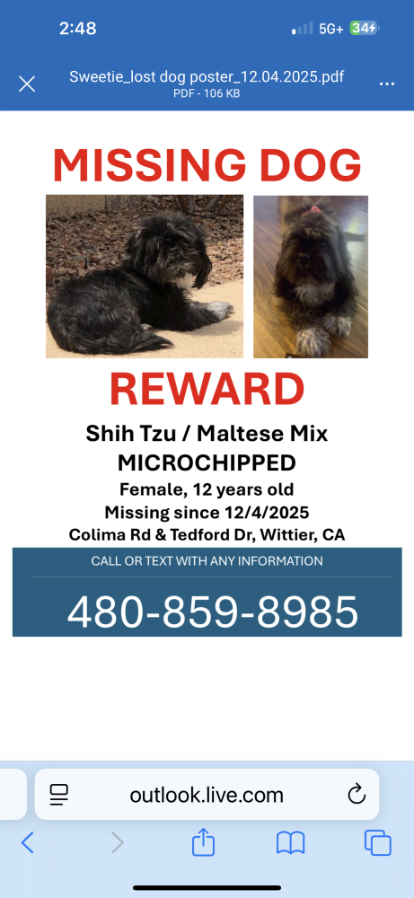 Pet Description:12 years old black with white on chest and paws. someone reported on nextdoor potentially seen 2 days ago by Hacienda Village she is very sweet never been away from home. |