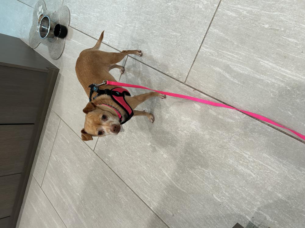 Pet Description:She is 10.8 pounds, tan body some cream around the nose area. She is pottie trained, likes to play fetch, likes to go for long walks, a bit snappy as well as food , treat , and toy protective. Growls and bites if you get in her space when she is afraid or tired in her kennel. |