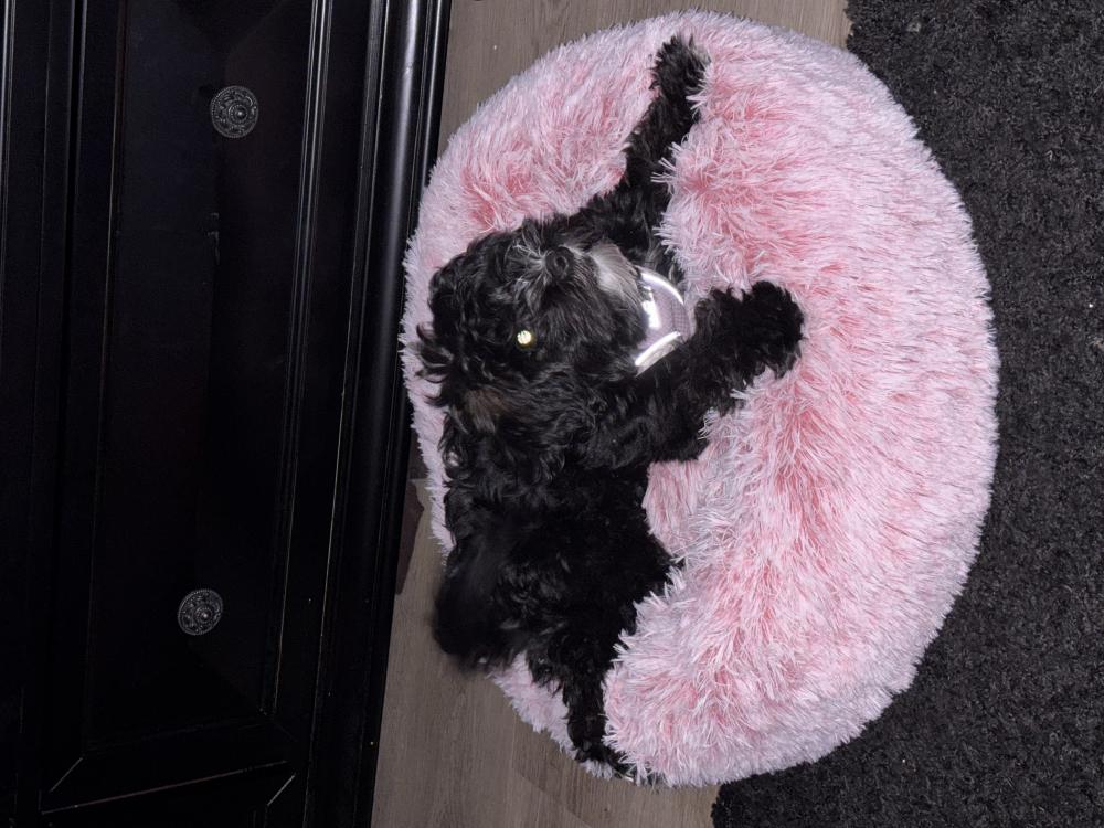Pet Description:Yorkipoo black with white on chin and tips of paws. Brown on top of head and ears. Last seen wearing a pink collar |
