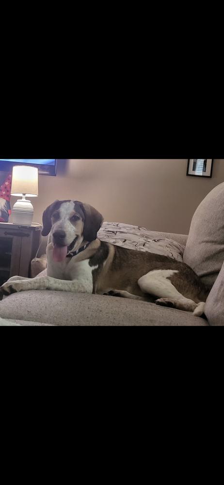 Pet Description:65 lb male hound mix. Tried color, |