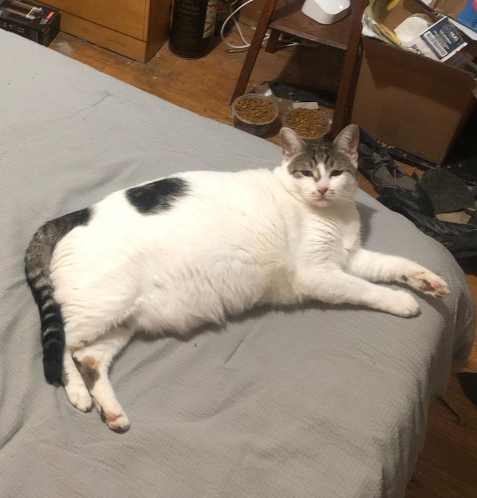 Pet Description:White short hair mostly with two black spots on the right-side Hazel eyes chipped and registered |