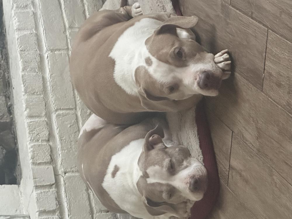 Pet Description:(2) white dogs missing with tan spots. Both are not wearing collars. Dogs were let out by a family member and dogs ran out through a broken fence. They are friendly with people. Boy dog is Maverick and girl dog is Leyla. |