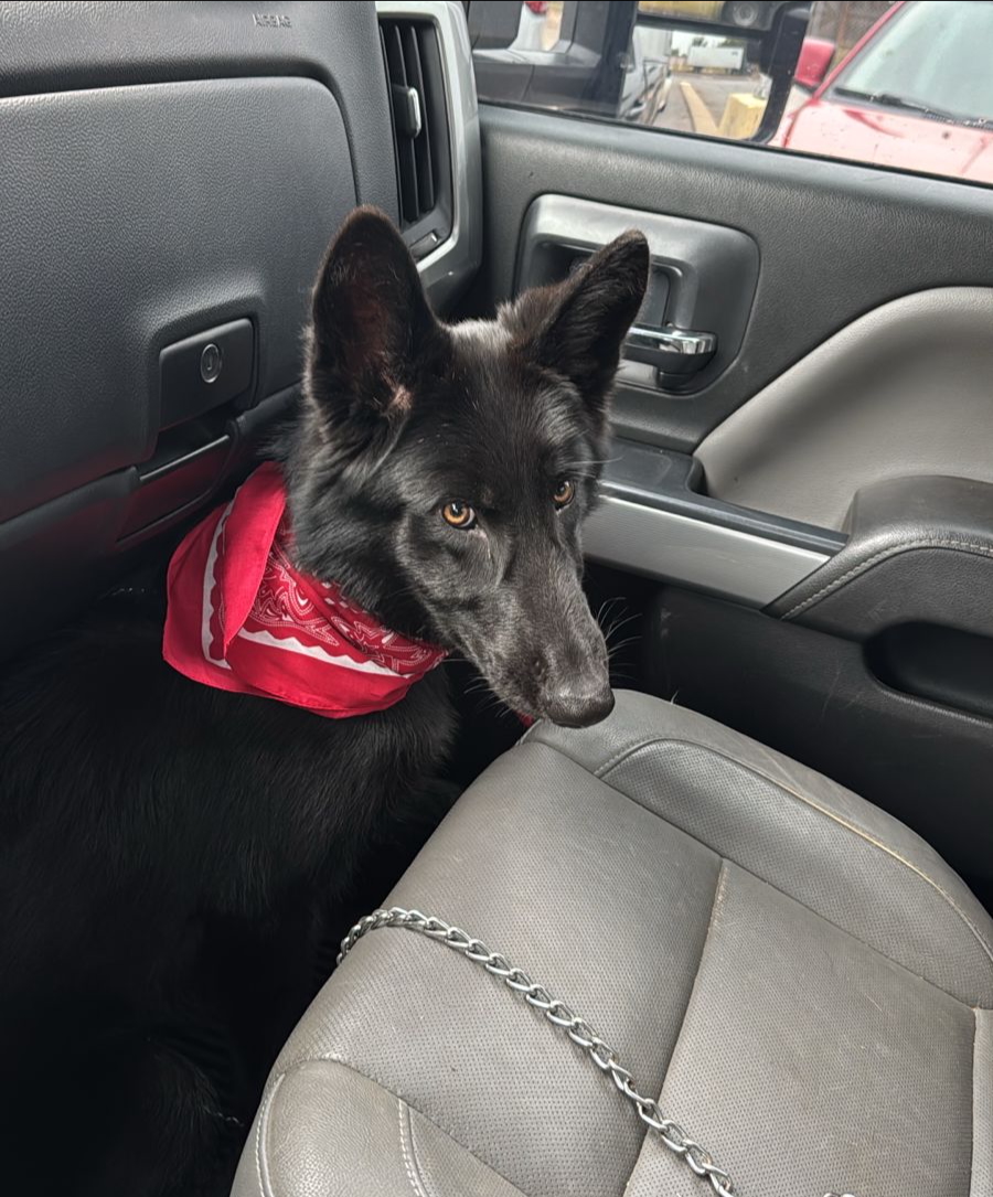 Pet Description:tala is a 8 months, black female and she is wearing a blue and brown collar |