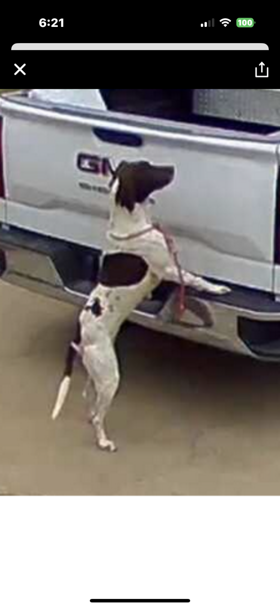 Pet Description:White with brown spots. Brown ears. No collar. Thin. I think she is chipped but will have to check. She is afraid of everything so wants to be in your lap. She is a bird dog and loves to chase cats. My husband was dog sitting her so she is not familiar with our neighborhood. She is not street/car smart. Please help if you can. Thank you. |